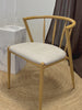 Der gepolsterte Sitz aus beigem Stoff bietet hohen Sitzkomfort, während das robuste Metallgestell für Stabilität und Langlebigkeit sorgt. Der Stuhl ist zudem stapelbar, was ihn im Alltag praktisch und platzsparend macht