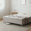 Das Bett besteht aus einer wendbaren Federkernmatratze und einem Topper aus PU-Schaum, einem gängigen Schaumstoff, der in vielen Matratzen und Möbeln verwendet wird. Er bietet gleichmäßige Unterstützung, federt schnell zurück, wenn Sie aufstehen, und hat ein festeres Gefühl, ohne sich so stark an den Körper anzupassen wie Memoryschaum. Diese Kombination sorgt für eine stabile Liegefläche und einen erholsamen Schlaf.