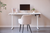Die elegante Tischplatte aus schwarzem Kunststofffurnier ruht auf einem stabilen Stahlgestell für einen leichten und modernen Look, der sowohl ins Home Office als auch an den Arbeitsplatz passt. Die Oberfläche ist strapazierfähig, kratzfest und leicht zu reinigen, so dass Ihr Schreibtisch viele Jahre lang sein gutes Aussehen behalten wird