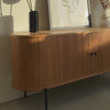 Unten finden Sie Stoffmuster für Florence Jalousieschrank mit Lamellen aus Eiche 160x45x75 cm